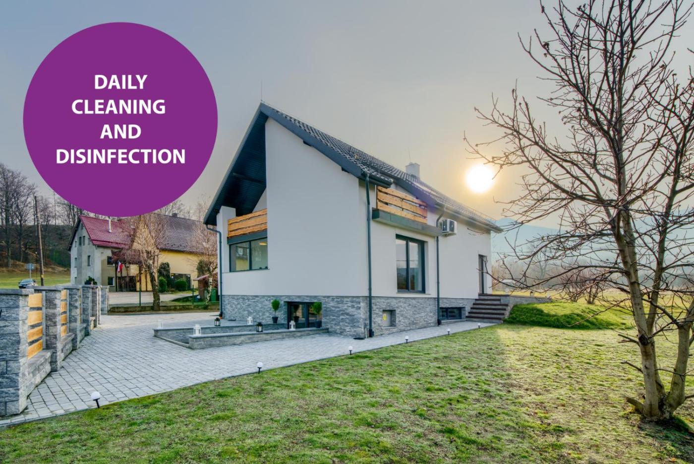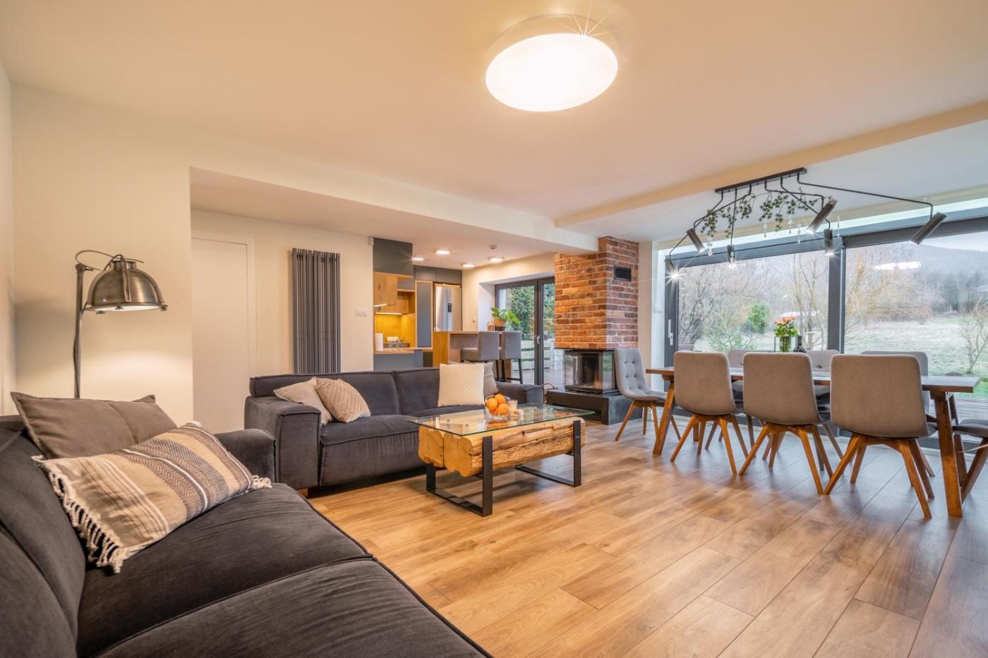 Willa. The hot tub and fireplace are the standout features of this villa. Boasting a private entrance, this air-conditioned villa comes with 1 living room, 5 separate bedrooms and 2 bathrooms with a bath and a shower. Guests will find a stovetop, a refrigerator, a dishwasher and kitchenware in the well-equipped kitchen. The villa also includes a barbecue. Featuring a terrace with garden views, this villa also features a washing machine and a flat-screen TV with streaming services. The unit has 9 beds. Willa - 10 osobowy. Powierzchnia pokoju ok.: 170 mkw.
