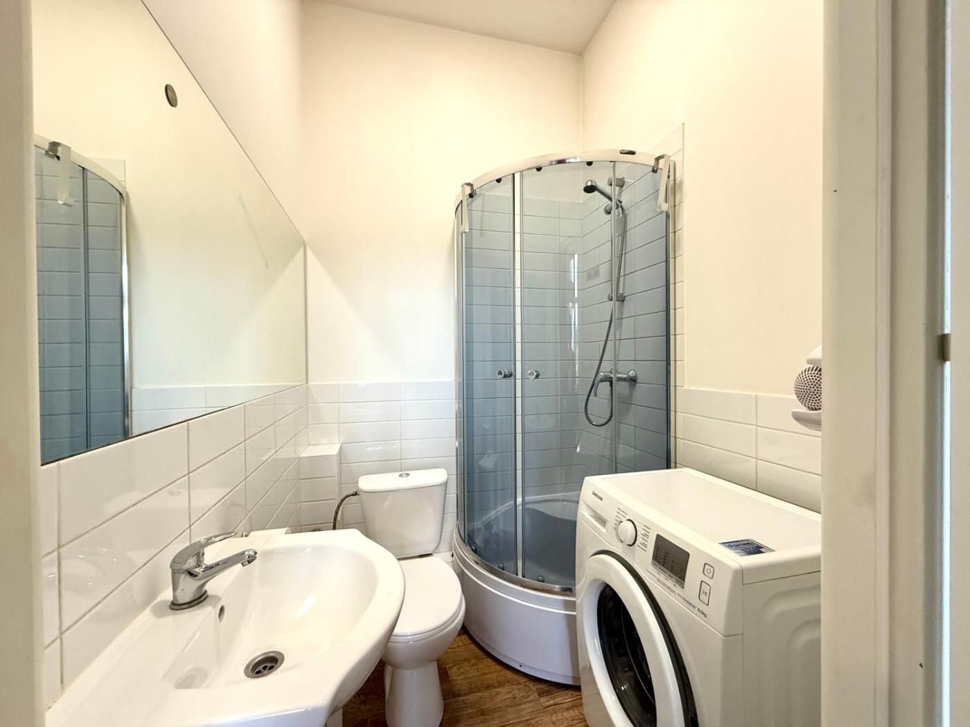 Apartament z 1 sypialnią. The apartment features 1 bedroom, 1 bathroom and a kitchenette. In the kitchenette, guests will find a refrigerator and kitchenware. This apartment has a washing machine, heating and a flat-screen TV. The unit offers 1 bed. Apartament - 2 osobowy. Powierzchnia pokoju ok.: 18 mkw.
